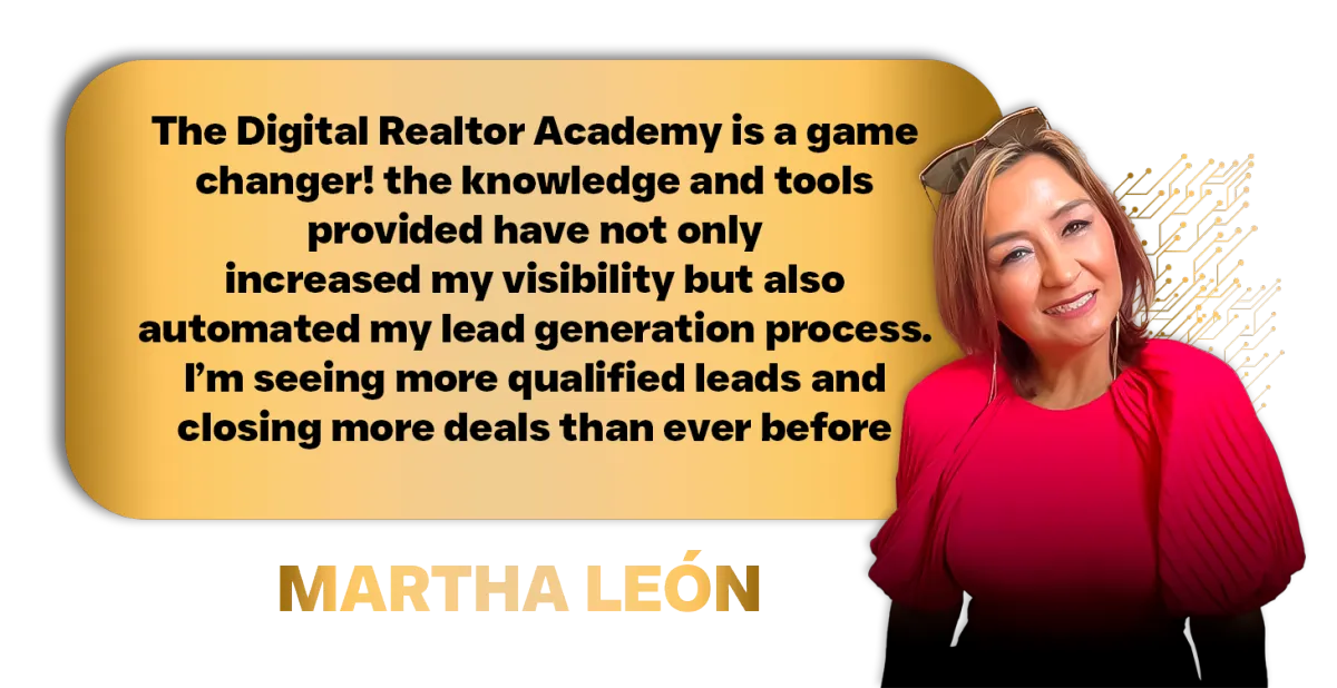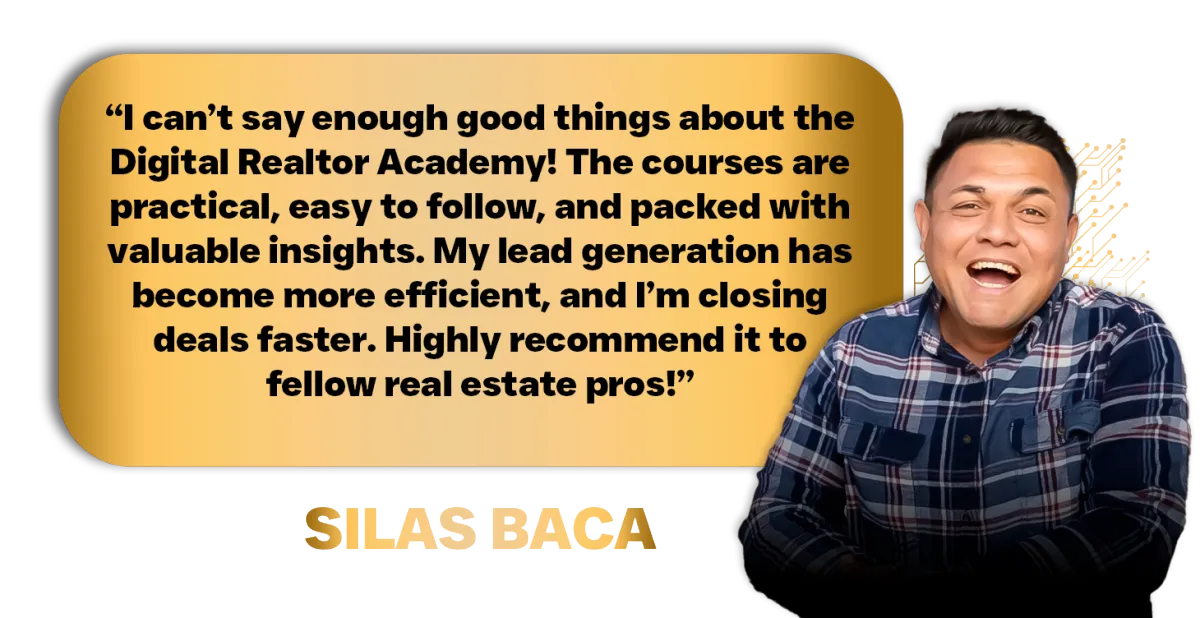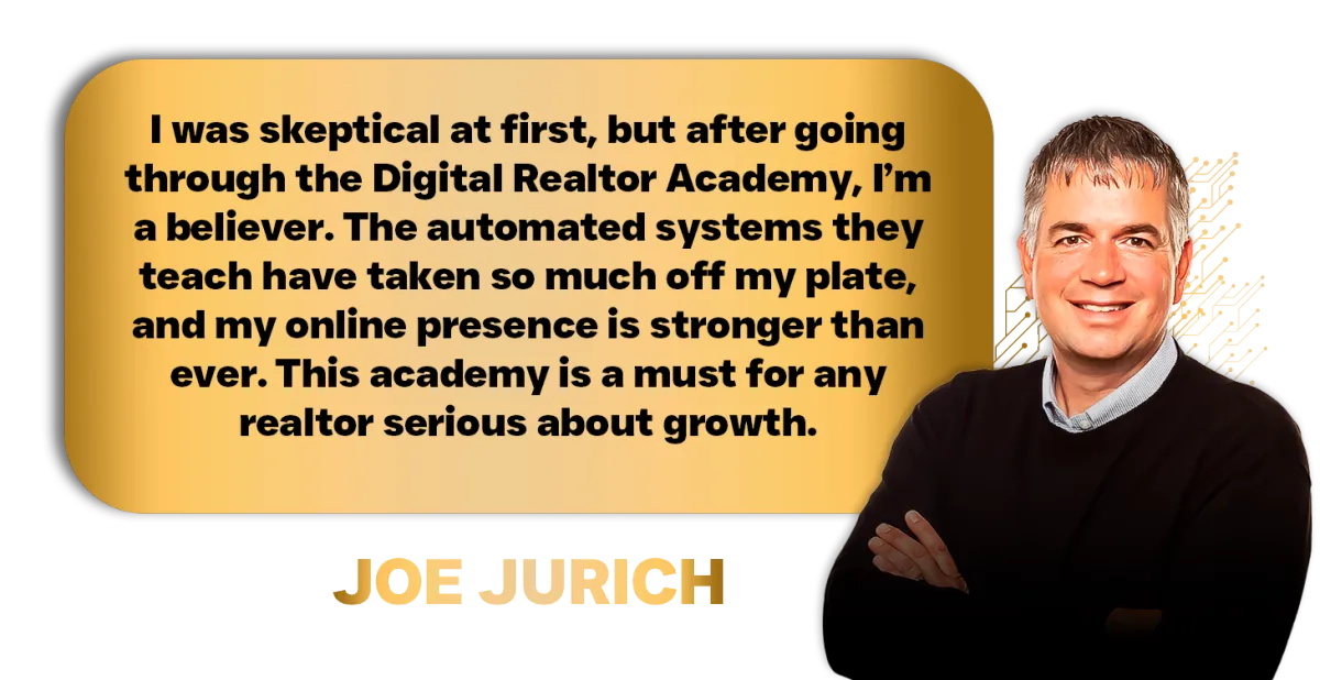 The Digital Realtor Academy programs are not responsible for your actions. You are solely responsible for your own moves and decisions, and the evaluation and use of our products and services should be based on your own due diligence. You agree that the Digital Realtor Academy programs are not liable to you in any way for your results in using our products and services. Please see our Terms and Conditions for our full disclaimer and other restrictions.
